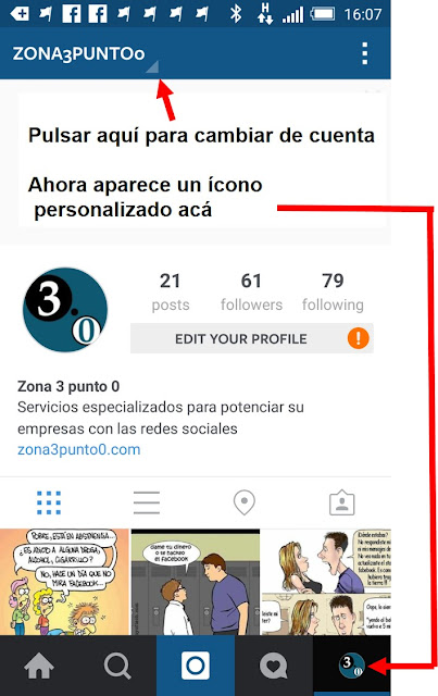 En la parte inferior derecha ahora aparecerá un icono personalizado, correspondiente a la cuenta que usted está visualizando.